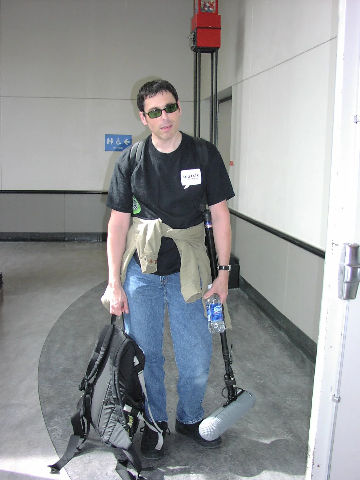 Curt schleps camera gear during a video production in the late 2000s. Photo: Seattle Channel